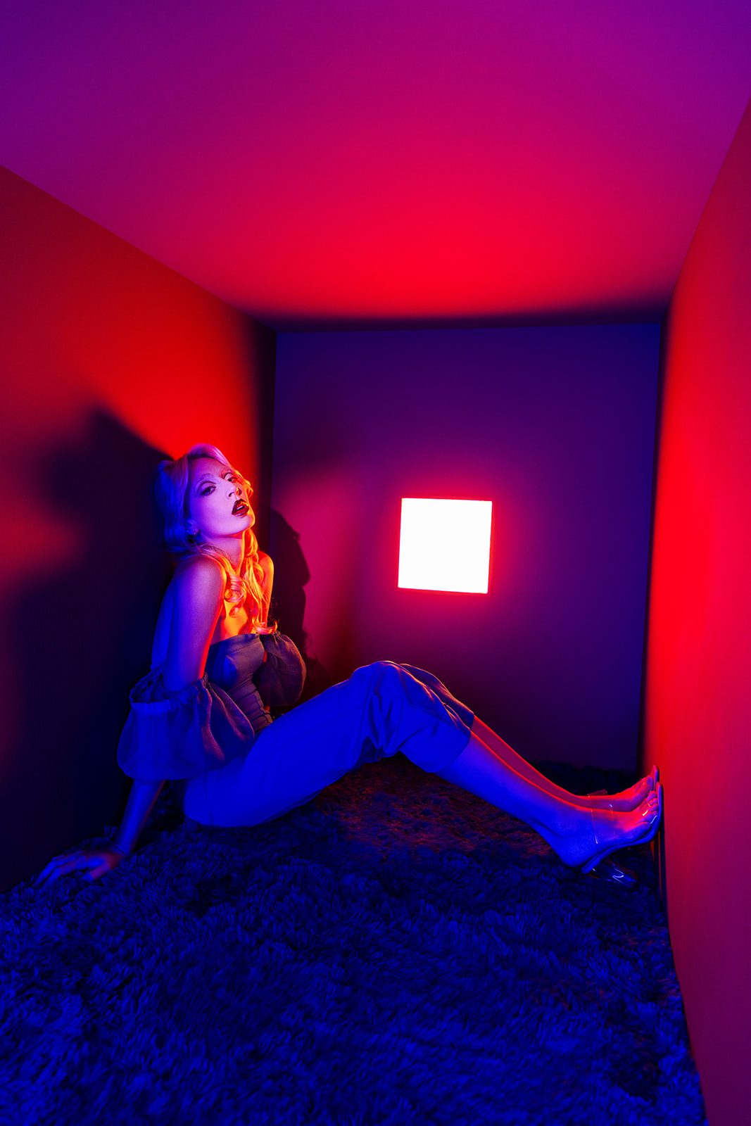 You don’t have to choose just one. Try blending warm and cool light, like red with blue, to create purples and magentas. The gradient adds depth and balance while keeping a surreal, cinematic vibe.